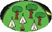 Dann aber überrascht der Platz mit seinem "Hinterland", daß die nahegelegene Polizeiwache großzügig mit Bäumen abschottet. Auch hier ist wieder Platz auf dem Platz. Die Zielschieben vom Bogenschießen standen auf einer extra-Wiese immernoch aufgebaut und am Rande des Platzes war genug Möglichkeit, eine Ballanlage für's Baseball aufzubauen. Uns "alte ganz draußen Zelties" hat des große Schützenhaus etwas verwirrt. Aber grade bei Regen mag es Vorteile haben. Drinnen spielte am frühen Samstag Morgen eine nette Live-Band (leider vor fast leerem Raum).
